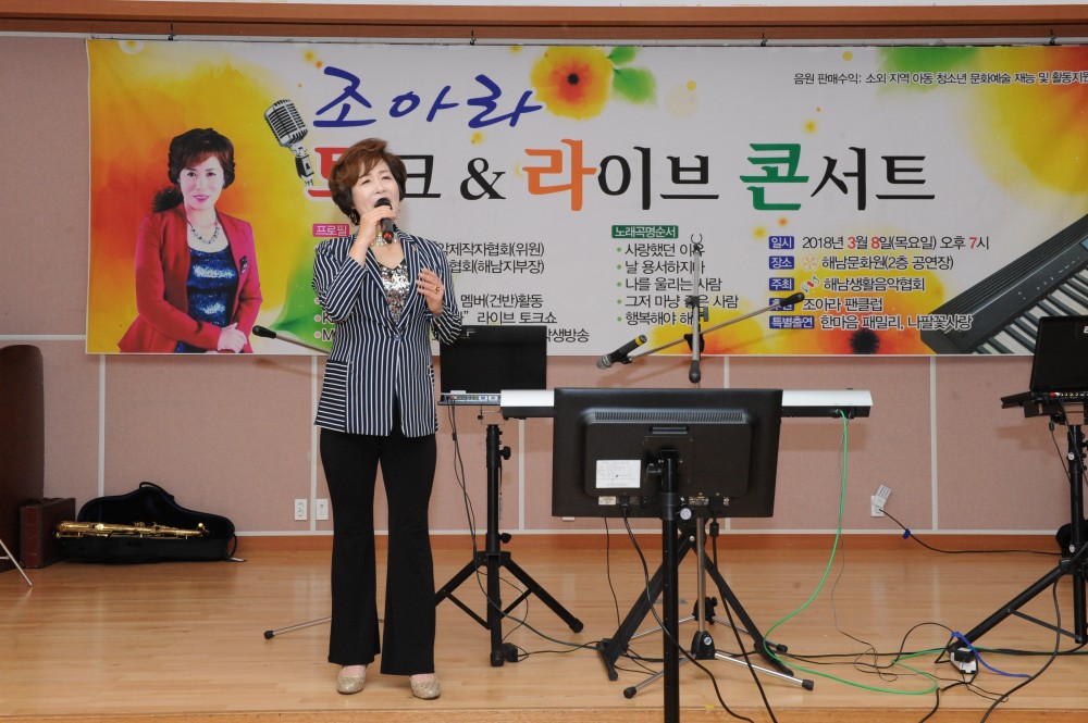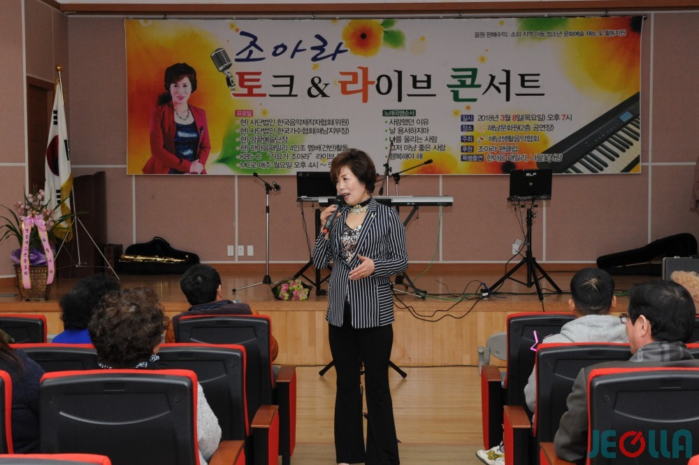 3월 8일 오후 7시, 가수 조아라 씨가 ‘해남문화원 2층 공연장’에서 ‘talk & 라이브 콘서트‘란 주제로 미니 콘서트를 열었다.