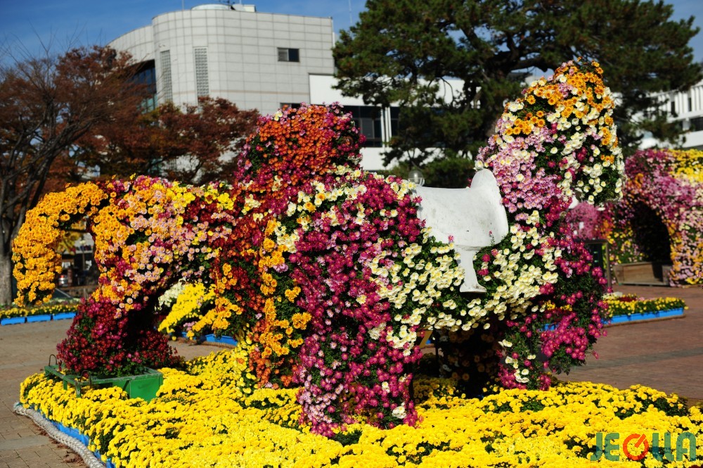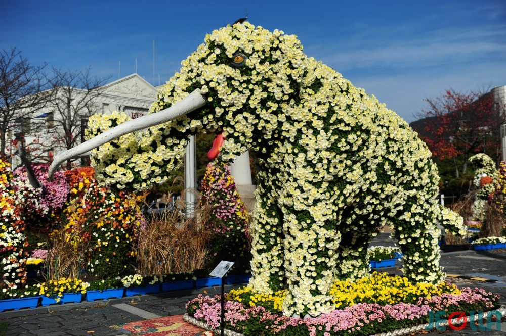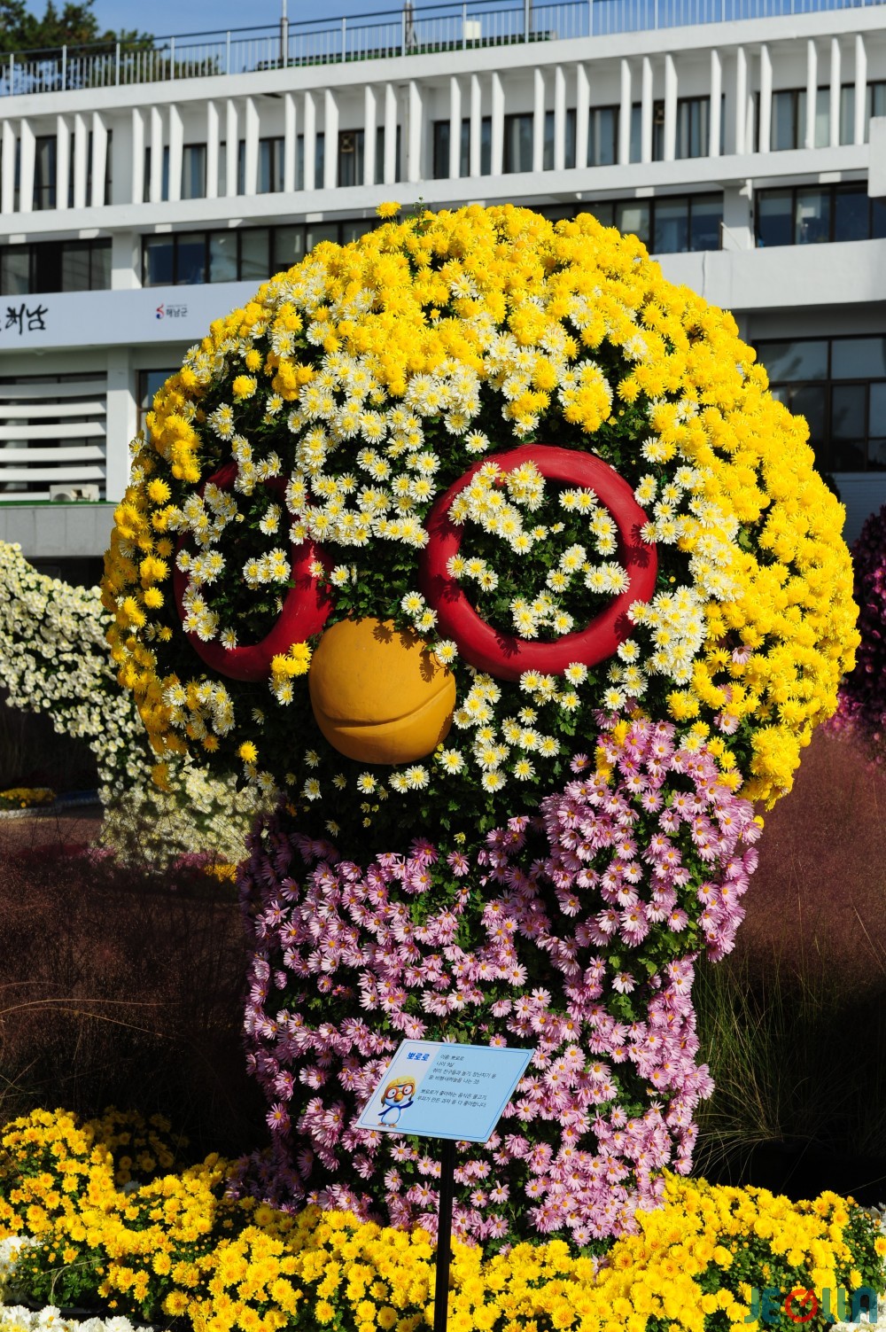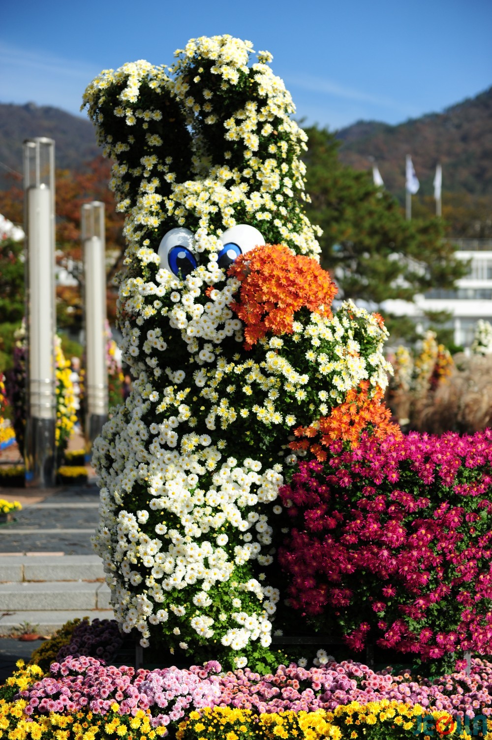 뭉치면 아름답다는 말은 국화꽃을 두고 한 말인 것 같다. 한 송이만 보면 그저 그랬던 국화꽃이 수십 수백 송이가 모이면 소가 되고 돼지가 되며, 아이들이 열광하는 만화의 주인공으로 재탄생하기도 한다. 국화꽃의 마법이다. 아니다. 국화꽃을 다루는 이의 마법이다. 해리포터의 마법보다 더 훌륭한 마법이다.