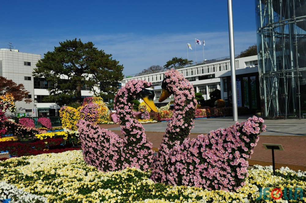 가을과 겨울이 교차하는 이 순간 해남군청 앞 광장에는 단출하지만 강렬한 국화꽃의 향연이 열리고 있다. 며칠 동안의 가을비에 앙상하게 뼈만 남은 나무들이 초라하게 보인다면 이제는 절정에 달한 국화꽃의 화려한 변신을 찾아 그 아쉬움을 달래는 것도 좋은 것 같다.