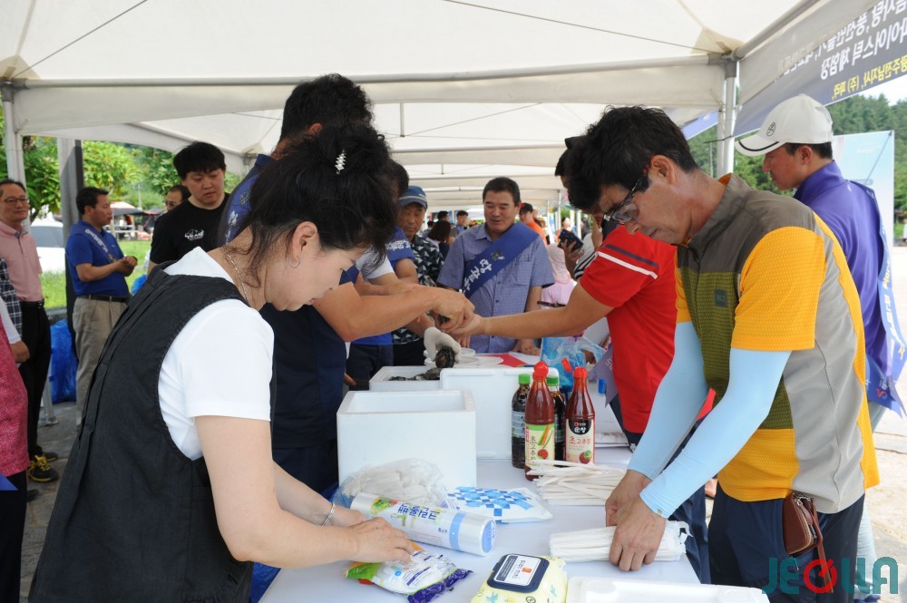 수산과 직원들오시아노 ‘락페스티벌’ 이틀째인 3일 오후 3시, 해남군이 주관한 ‘전복 시식회’ 행사가 수산물 판매 부스에서 열렸습니다.