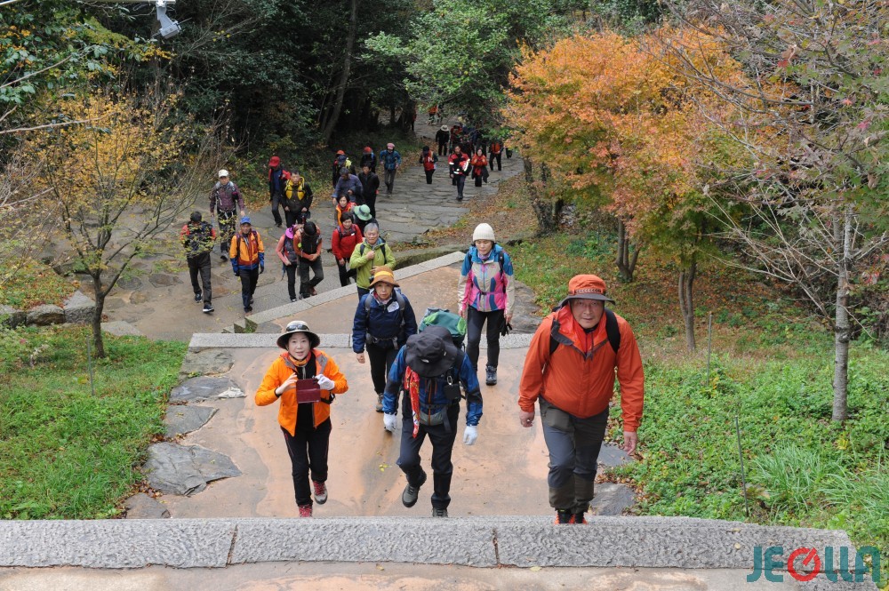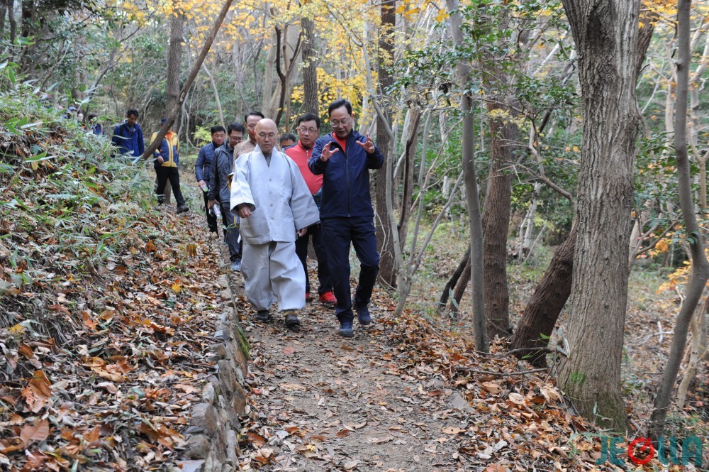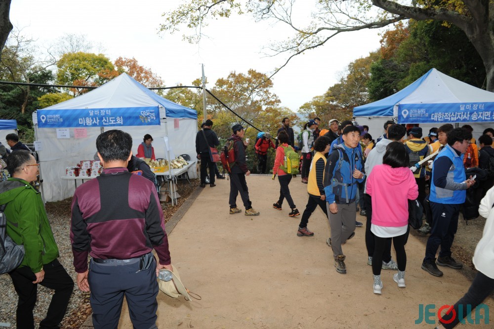 이날은 새벽까지 비가 내려 행사 관계자들과 참가자들의 애를 태웠는데요, 동이 터오자 비도 그치고 날씨가 청명해 관계자들은 안도의 한숨을 내쉬었답니다. 한편으로는 참가자들을 당황하는 일도 벌어졌습니다. 참가자 일부는 날씨가 추울 것이라 예상하고 두툼한 패딩이나 방한용 겨울옷을 입고 참가했는데요, 이날 온도는 20도에 육박했습니다. 얼마나 더웠을지 짐작 가시겠지요. 명현관 해남군수는 축제가 시작 될 때부터 마무리 될 때까지 축제 참가자들과 함께 했습니다. 그런데 명현관 군수도 달마고도를 걷다가 중간에 겉옷을 벗었습니다. 그만큼 날씨가 좋았단 얘기입니다.