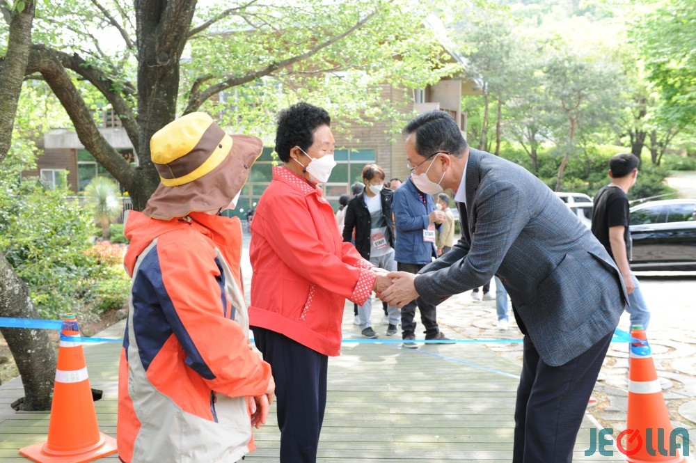 행사에 참여한 지역 어른신들과 인사 나누는 명현관 군수