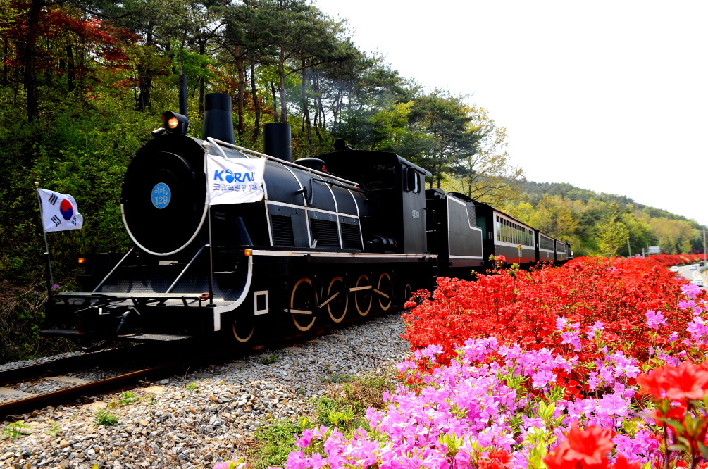 한 폭의 수채화 같은 곡성군 섬진강변 증기기관차와 레일바이크 모습