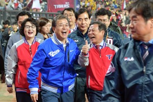 - 활짝 웃는 문재인 대통령과 윤장현 광주시장